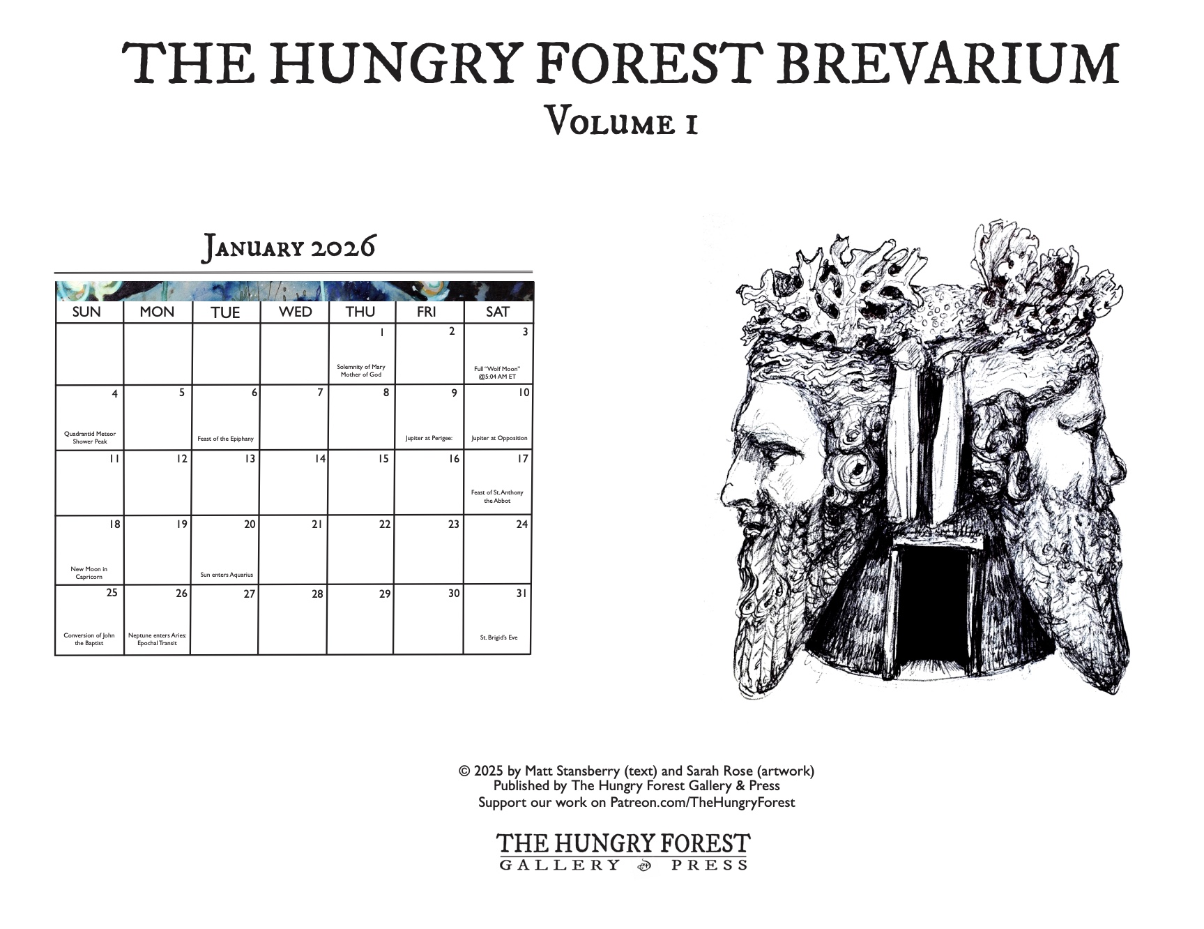 A breviary is a book of daily readings, prayers, and observations that mark the passage of time through the year. In its original form, the breviary structured the rhythm of psalms, scripture, and reflection for clergy and monastics. Over time, it became a portable companion for private devotion and seasonal awareness. This version keeps that structure of attention but widens the field: pairing saints’ days and sky events with local ecology, fieldwork, and magical practice.
